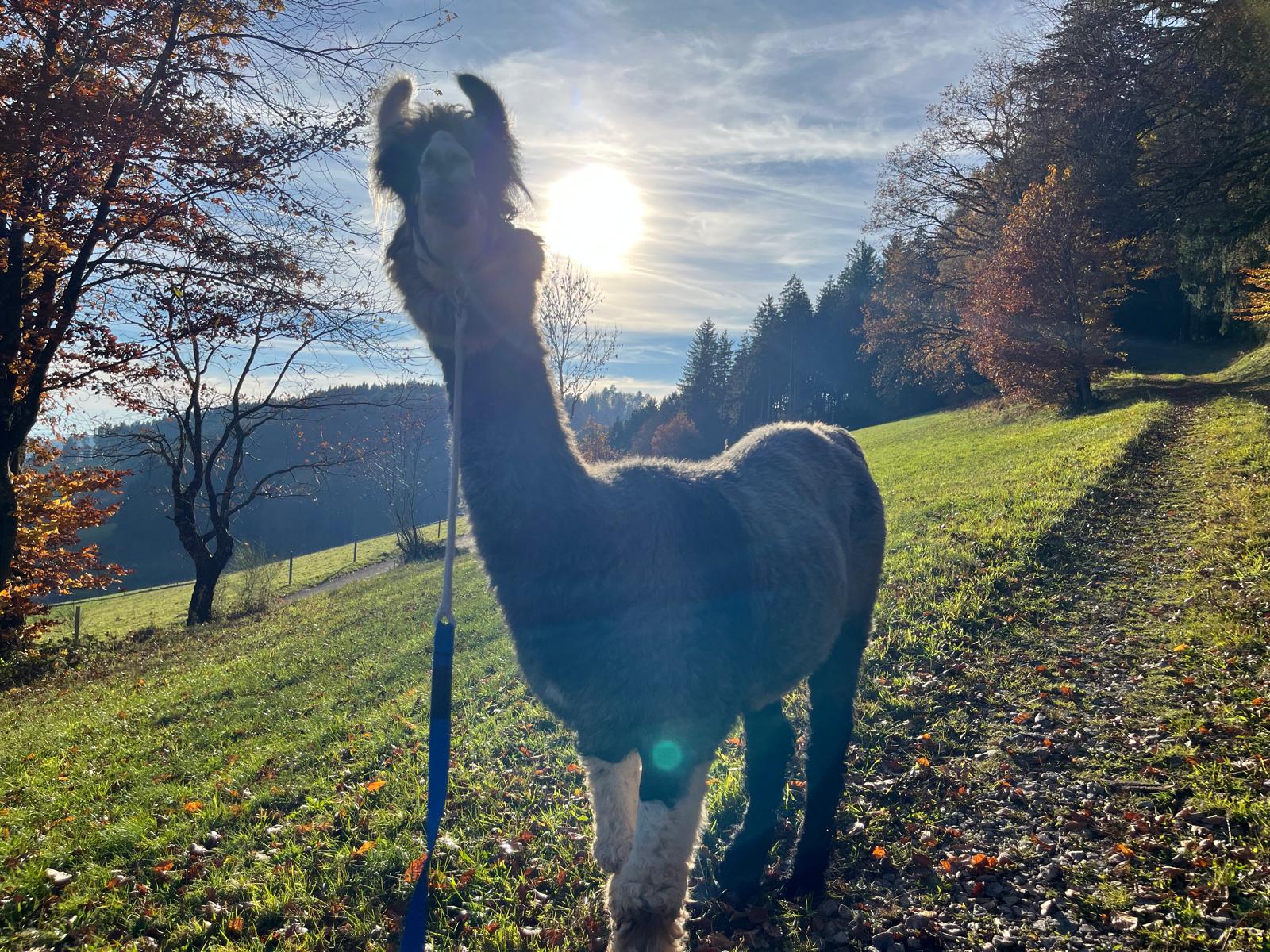 Je nach Charakter vom Lama und der Wegbeschaffenheit kann man die Leinenlänge