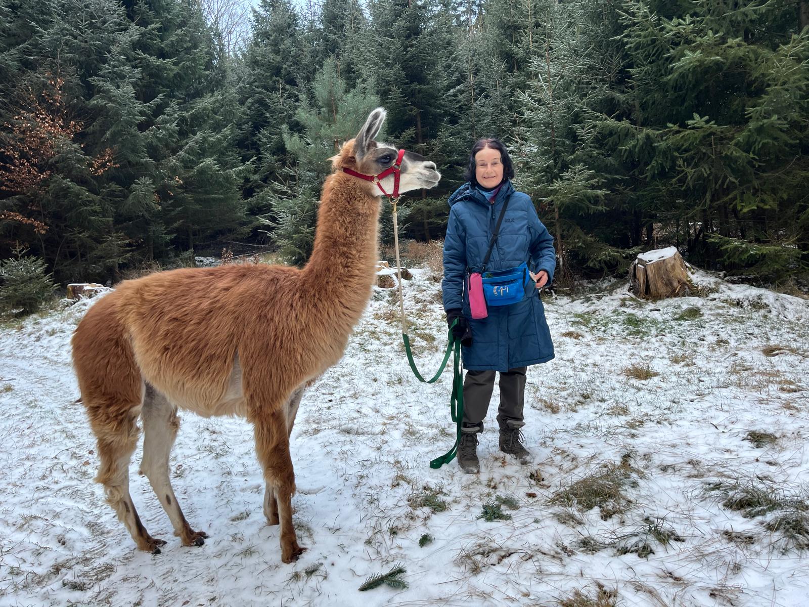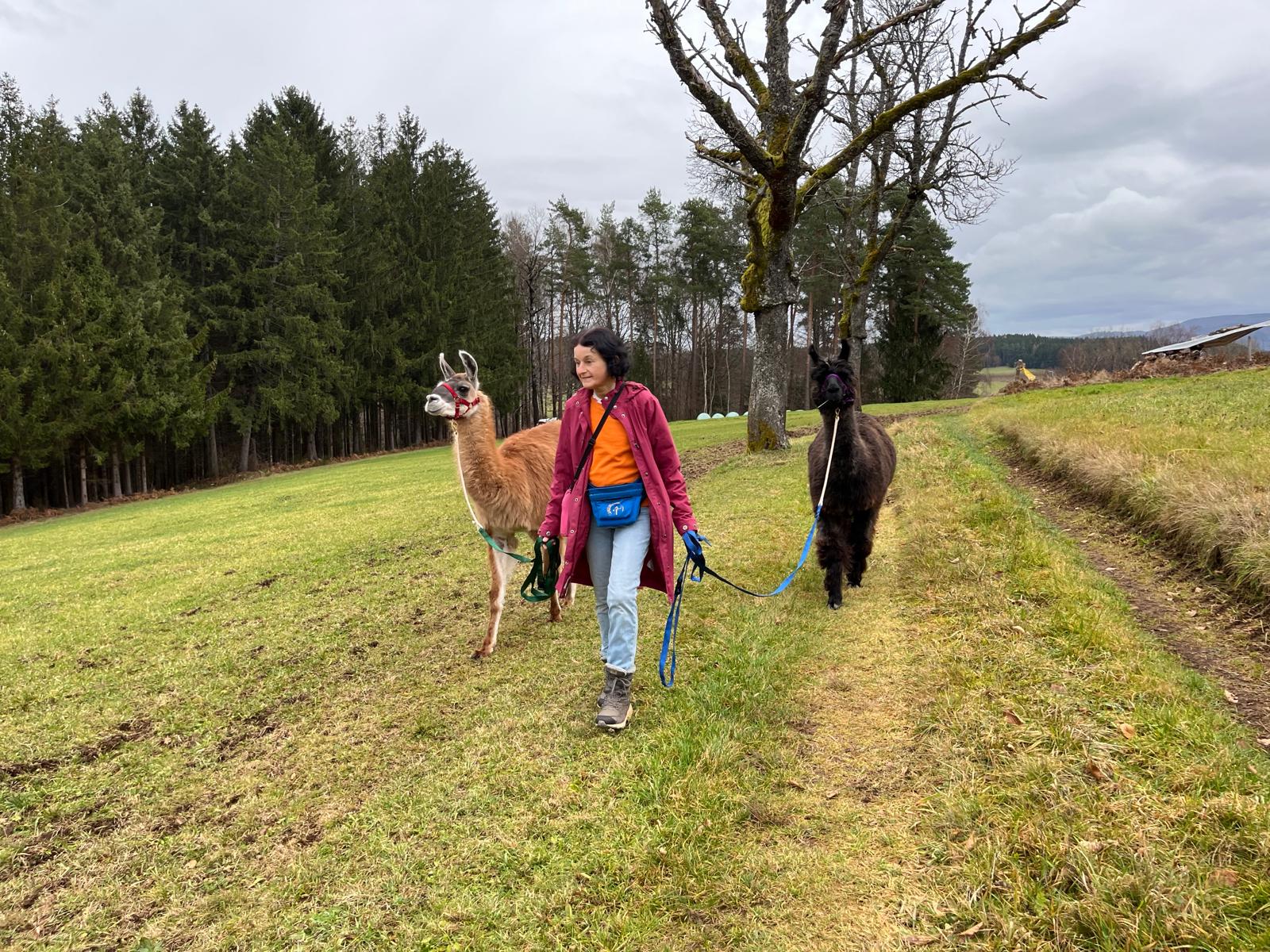 Führen und Spazierengehen mit einem Lama