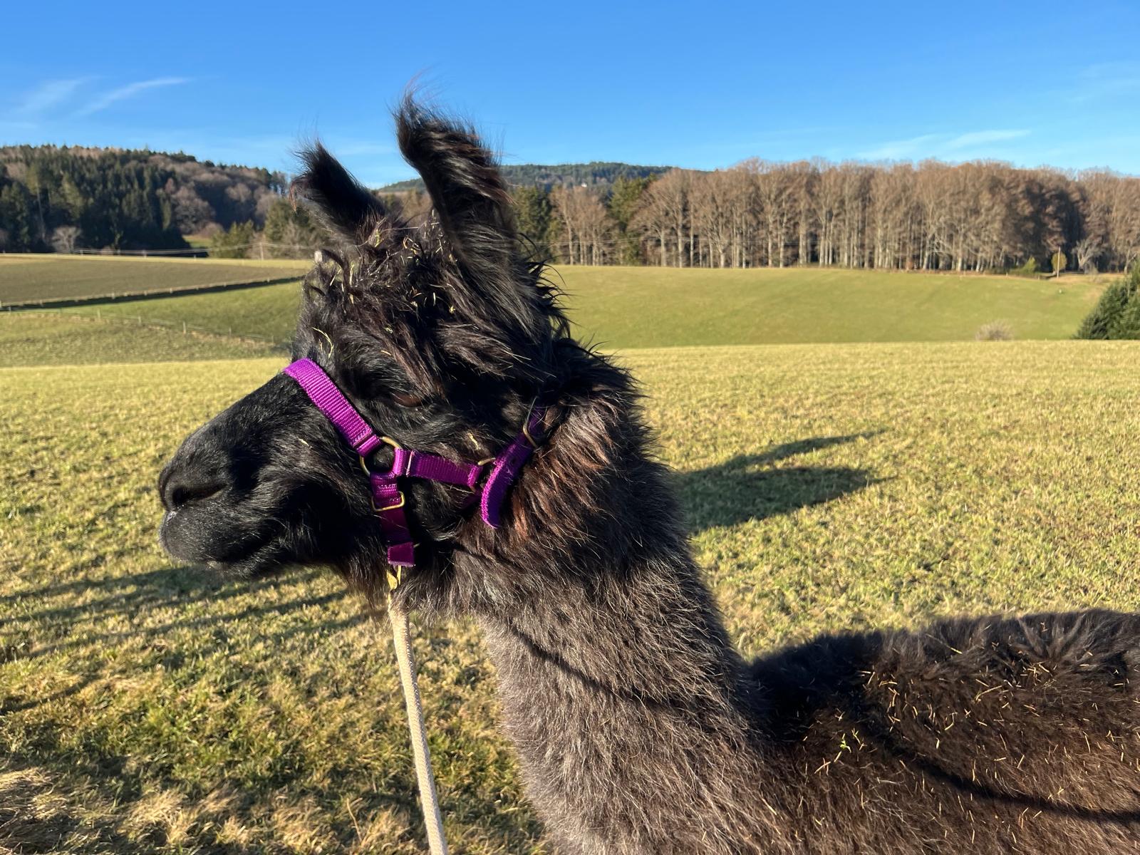 Gelände ist es gut längere Leine zu geben, so dass sich das Lama selbst