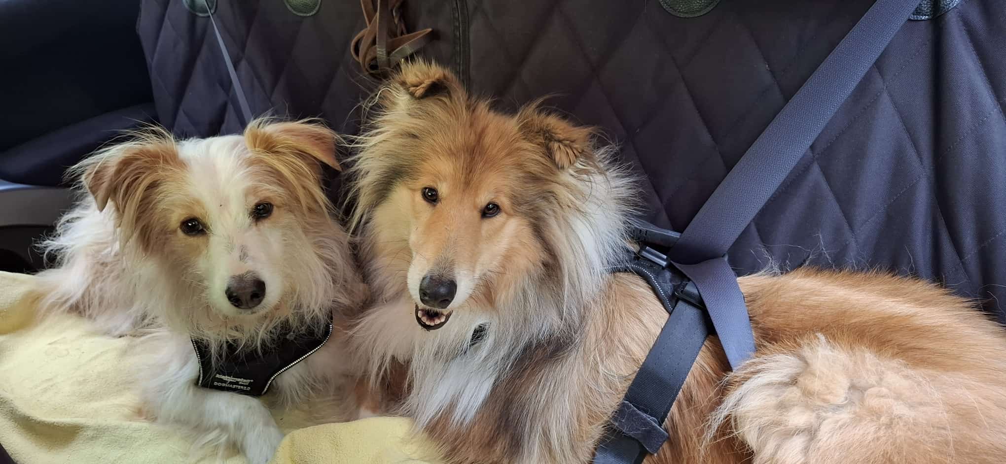 Fürs sichere Autofahren am Rücksitz habe ich für die Collie Chanel und Kiara ein sehr gutes massives Geschirr gefunden, das man direkt am normalen Sicherheitsgurt das Autos einhaken kann, es ist TÜV geprüft und Crash getestet: von Firma Kleinmetall den Hundesicherheitsgurt Geschirr DOG Master 2.