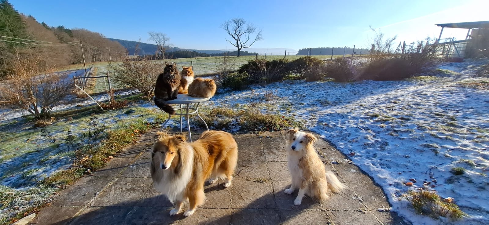 7 Collies und 3 Maine Coons leben alle zusammen im Haus mit den Besitzern. Wenn