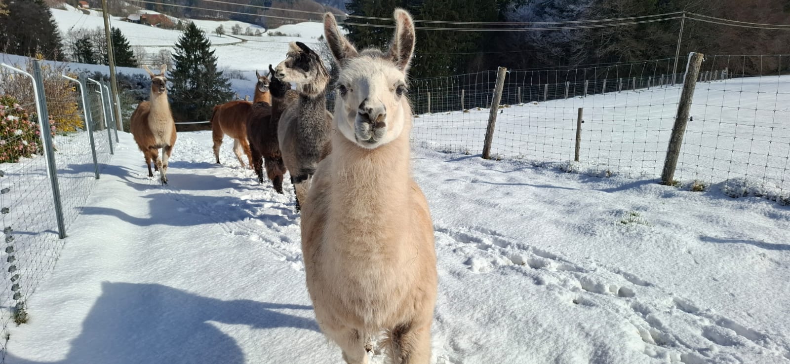 Die neue kleinere Lama Herde ist fein und ruhig und hat sich gut zusammengefunden,