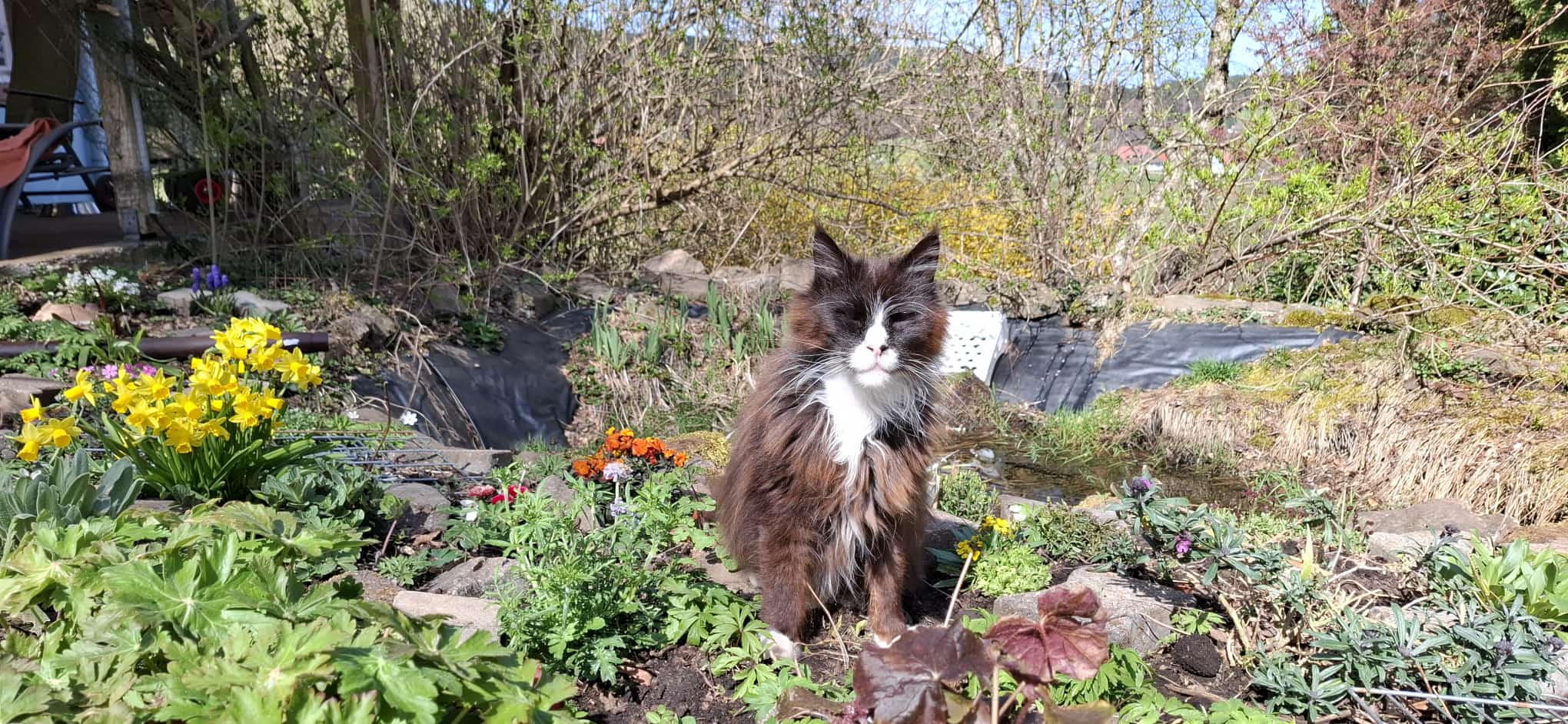 So war es mir eine Herzensangelegenheit diesen wunderschönen anmutigen Katzenwesen eine artgerechtes Zuhause zu bieten- mit gemütlichen Ruheplätzen am Sofa, im Bett und am wärmenden Holzofen und einem freien Auslauf im 2000 qm grossen katzensicher eingezäunten abwechslungsreichen Garten mit Teich.