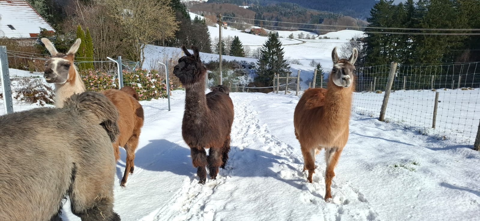Die neue kleinere Lama Herde ist fein und ruhig und hat sich gut zusammengefunden,
